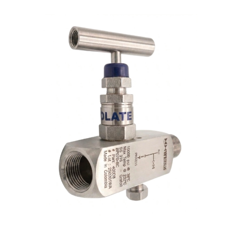 La válvula de bloqueo y purga modelo B070-BC bajo costo, permite aislar el instrumento del proceso y liberar de forma controlada la presión residual.